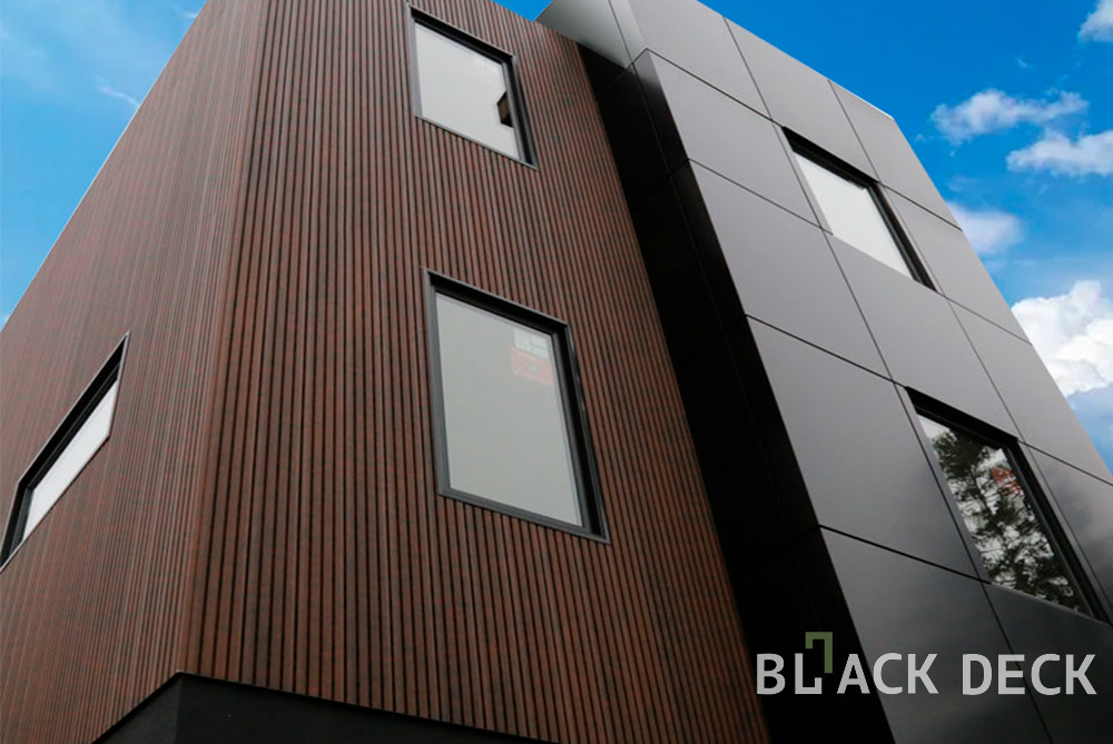 • Исключительная долговечность: Панели не боятся влаги, солнечных лучей, перепадов температур и биологических угроз (плесень, грибок, насекомые). Срок службы качественного ДПК-фасада превышает 50 лет.